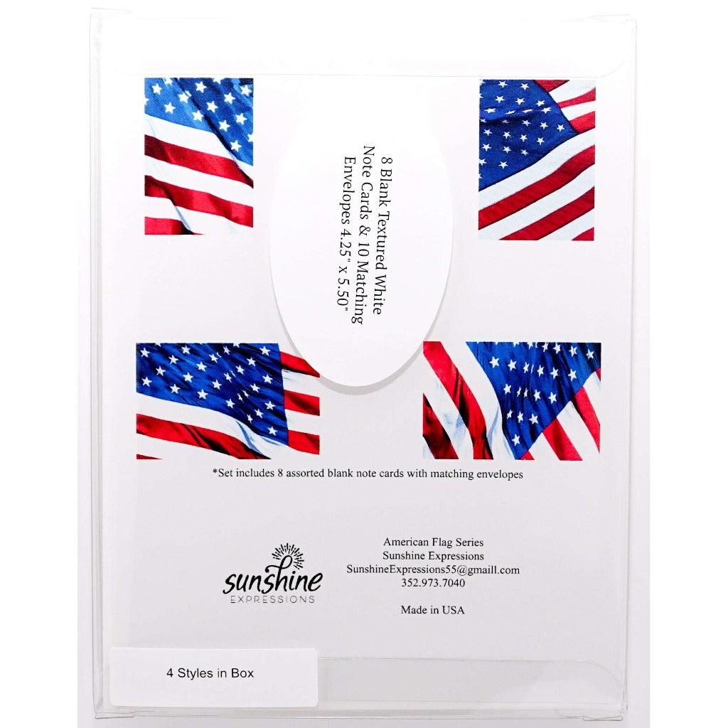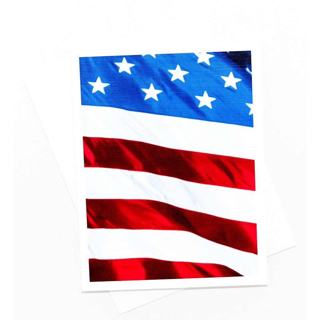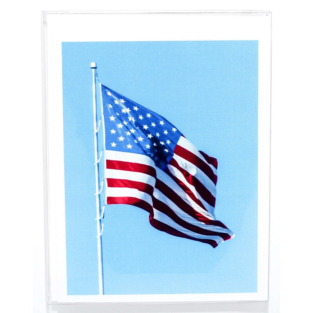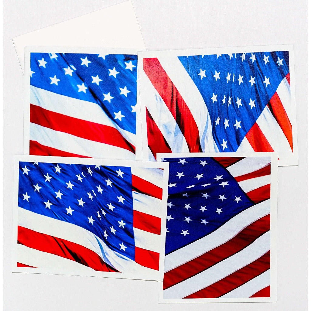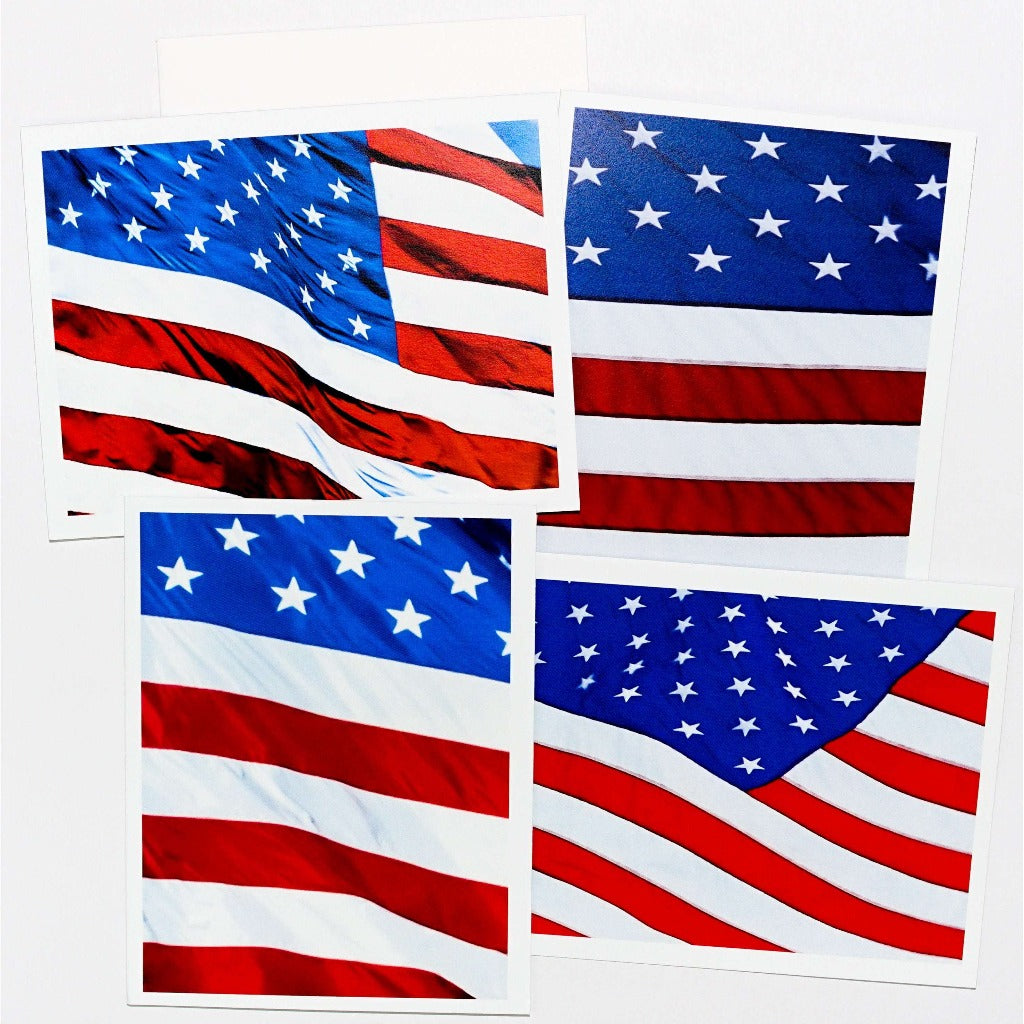 The American flag is a symbol of freedom and liberty. The unique shots are original photographs taken at different angles to show the true pride and personality of our red, white & blue. When you use our note cards featuring American flags your message will show your American spirit with Old Glory.