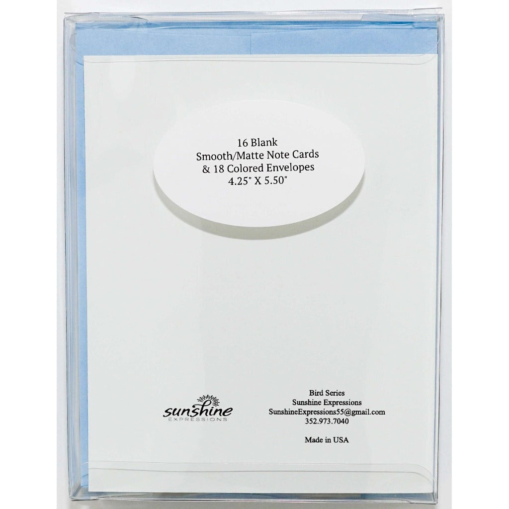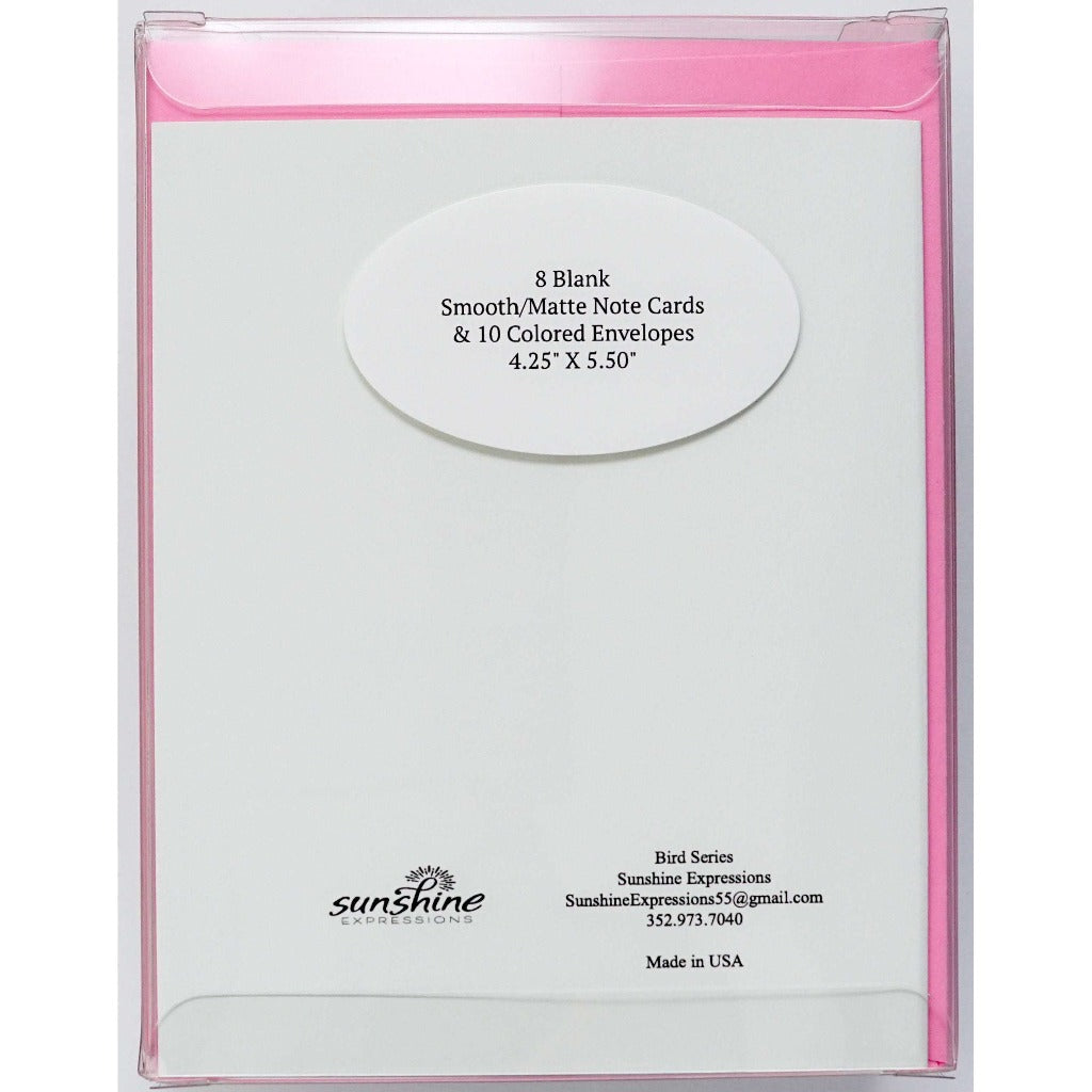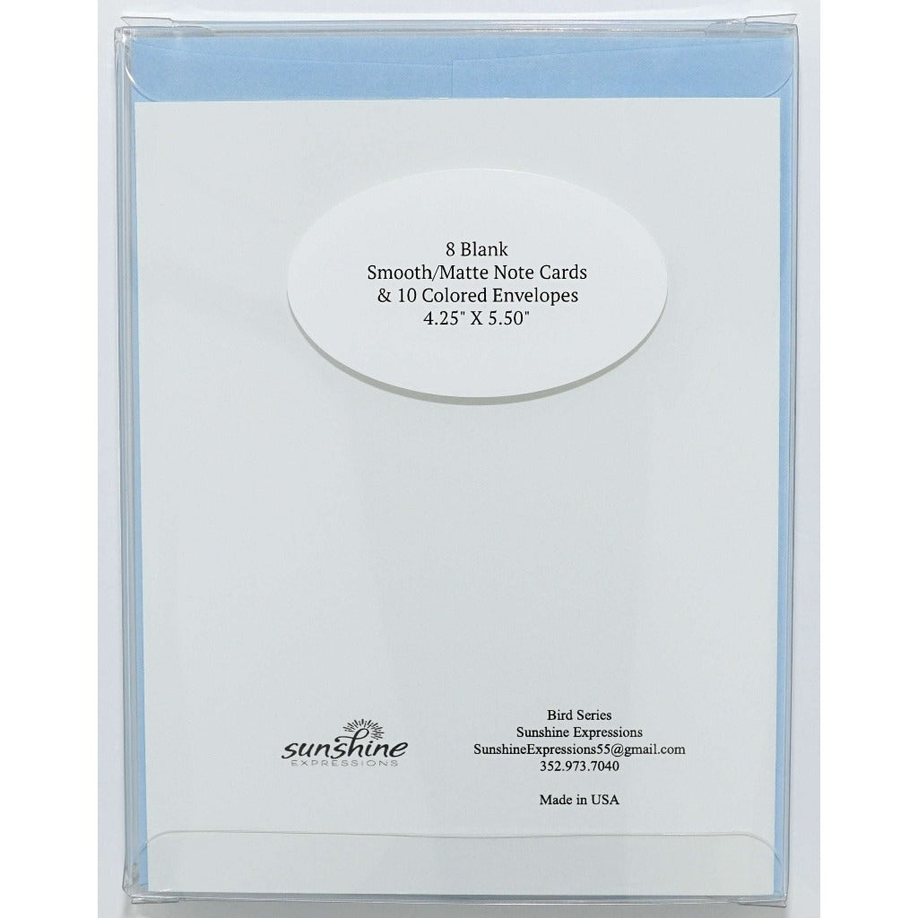 Bird Note Cards: Whimsical birds take flight across these beautiful smooth/matte note cards. Perfect for the wild bird & nature enthusiast. Writing on a bird note card with an encouraging message from you with Sunshine Expressions means the message you write will be even more special and unique. Our note cards for writing notes or gift giving comes in handy for year-round occasions, whether you are sharing encouraging words, expressing gratitude, or saying heartfelt congratulations. No matter what you write, or to whom you send these bird note cards, you are sure to bring a big smile to the receiver’s face!