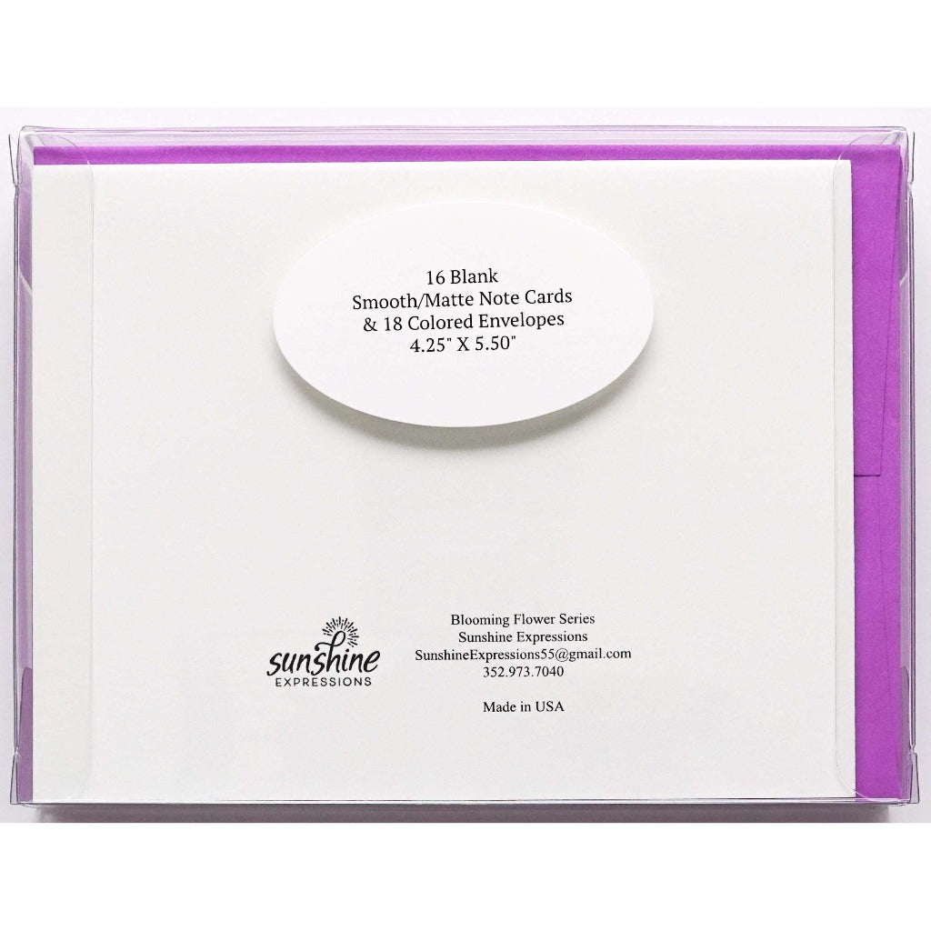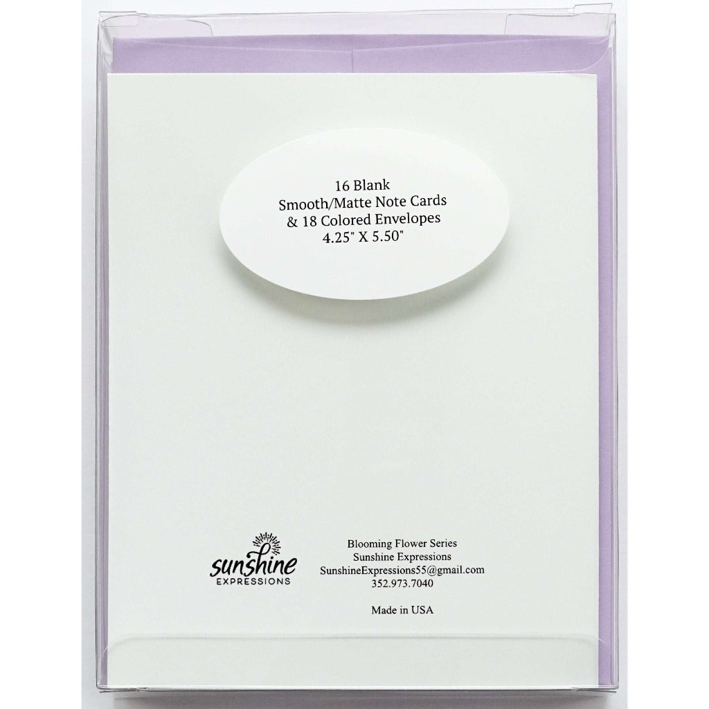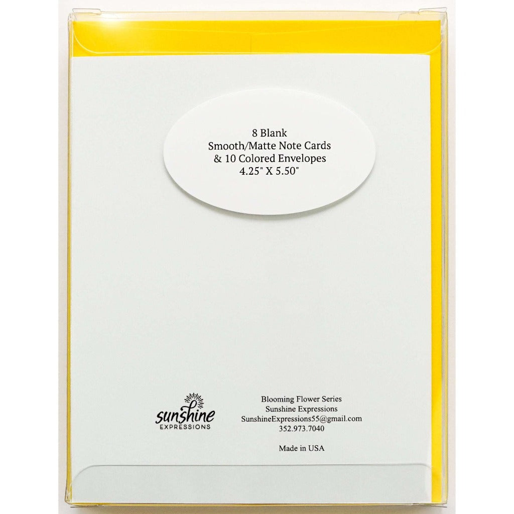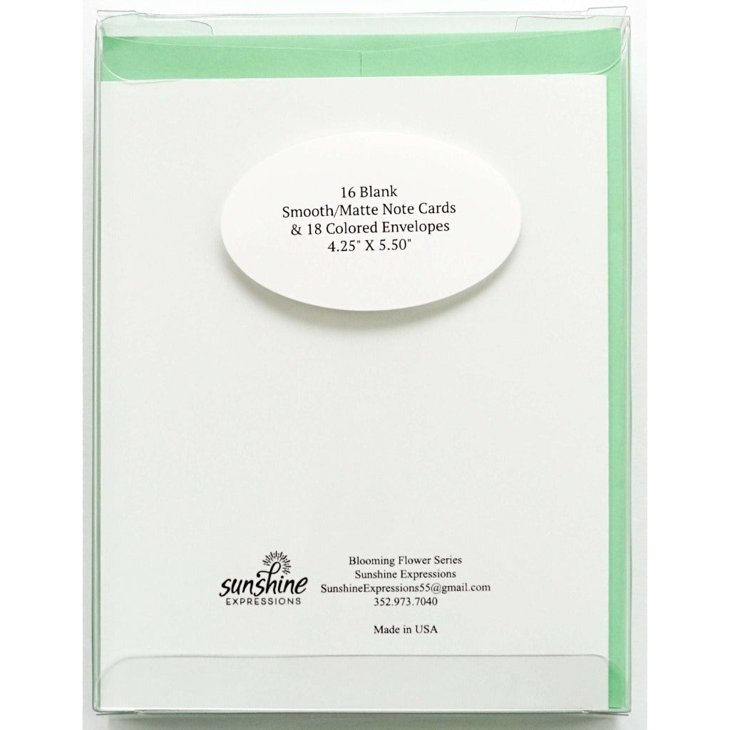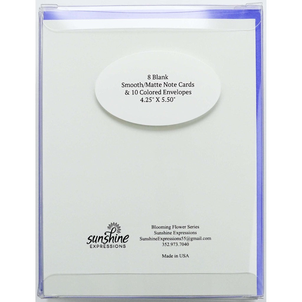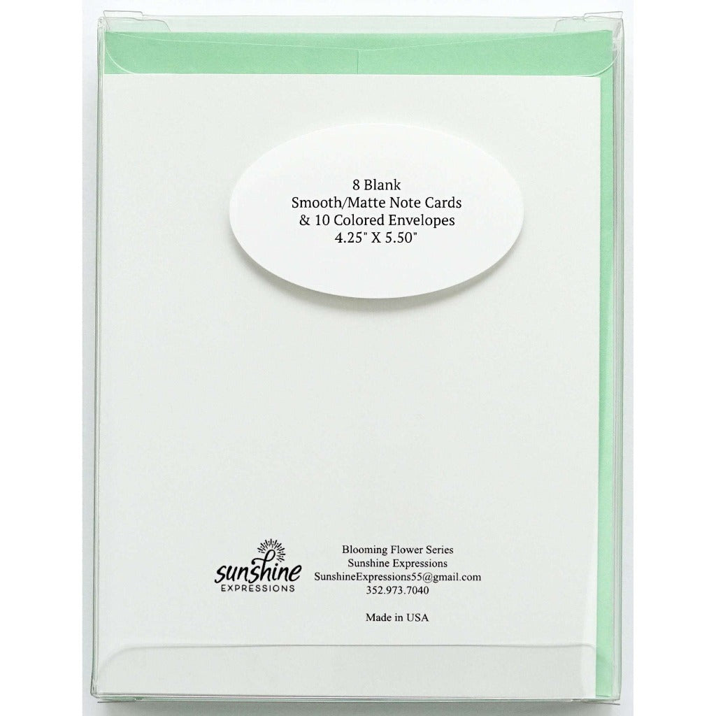 Brighten Their Day with Sunshine Expressions blooming flower note cards. Beautiful and elegant, our blank note cards leave a lasting impression and we make sure the message is delivered right to the heart! Our note cards can be framed as a unique gift.