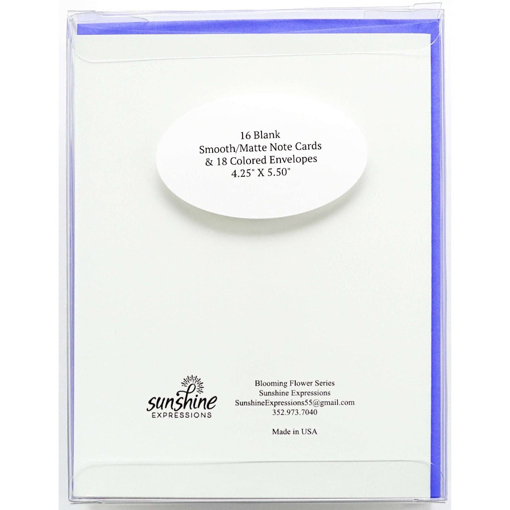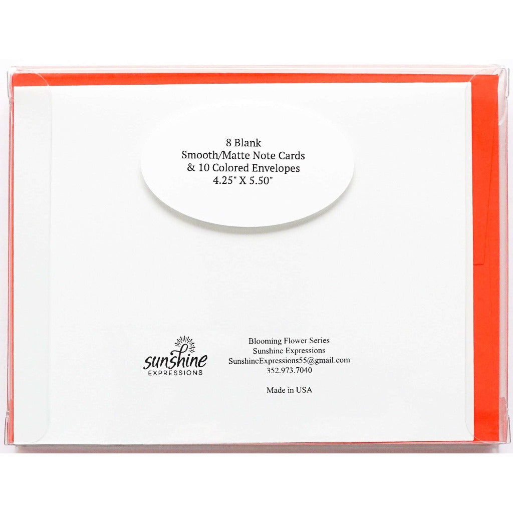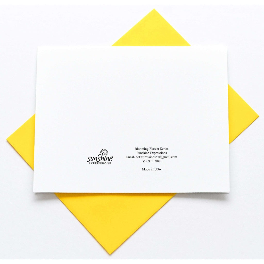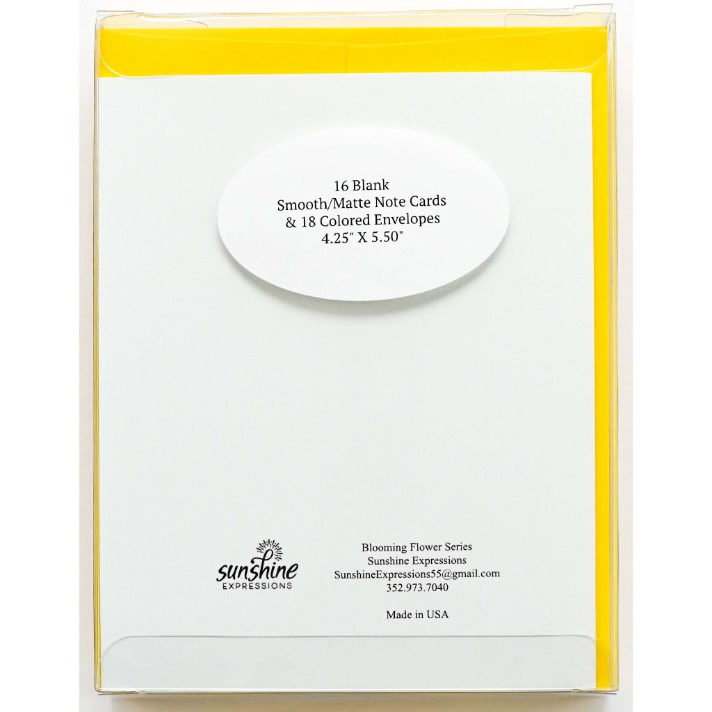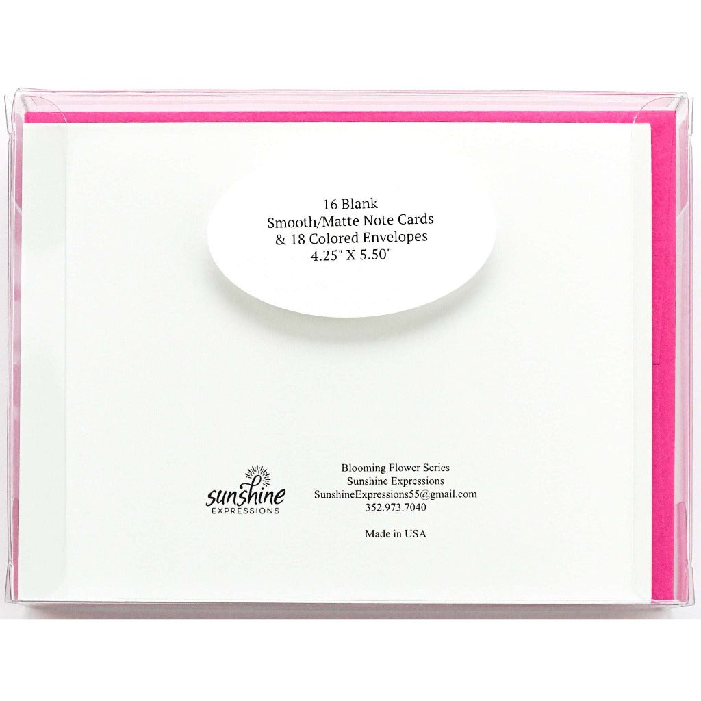Brighten Their Day with Sunshine Expressions blooming flower note cards. Beautiful and elegant, our blank note cards leave a lasting impression and we make sure the message is delivered right to the heart! Our note cards can be framed as a unique gift.