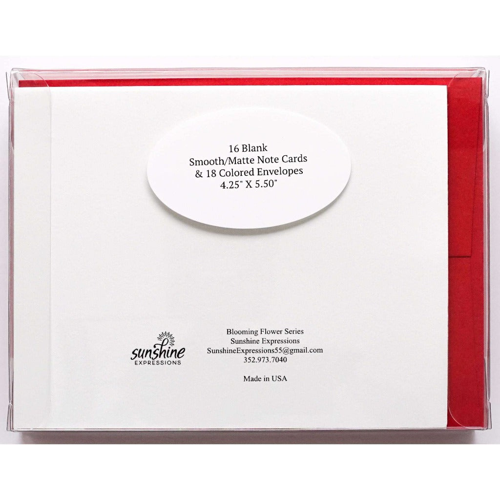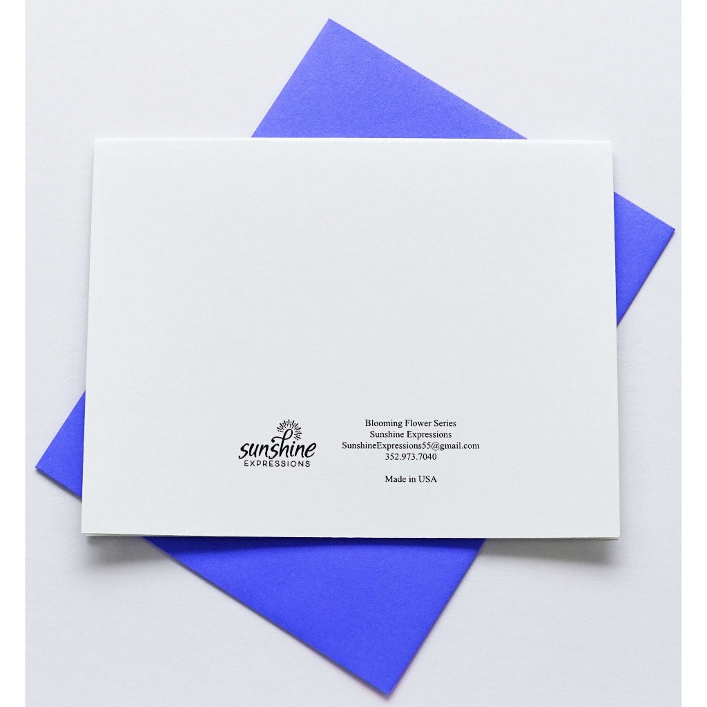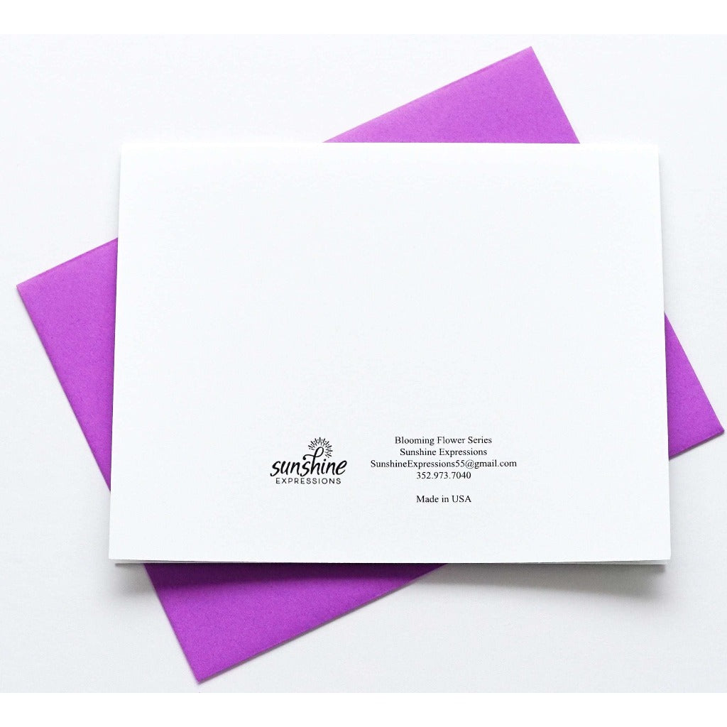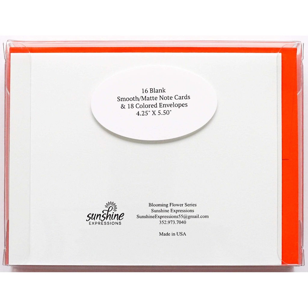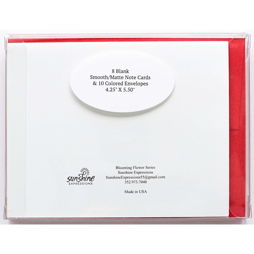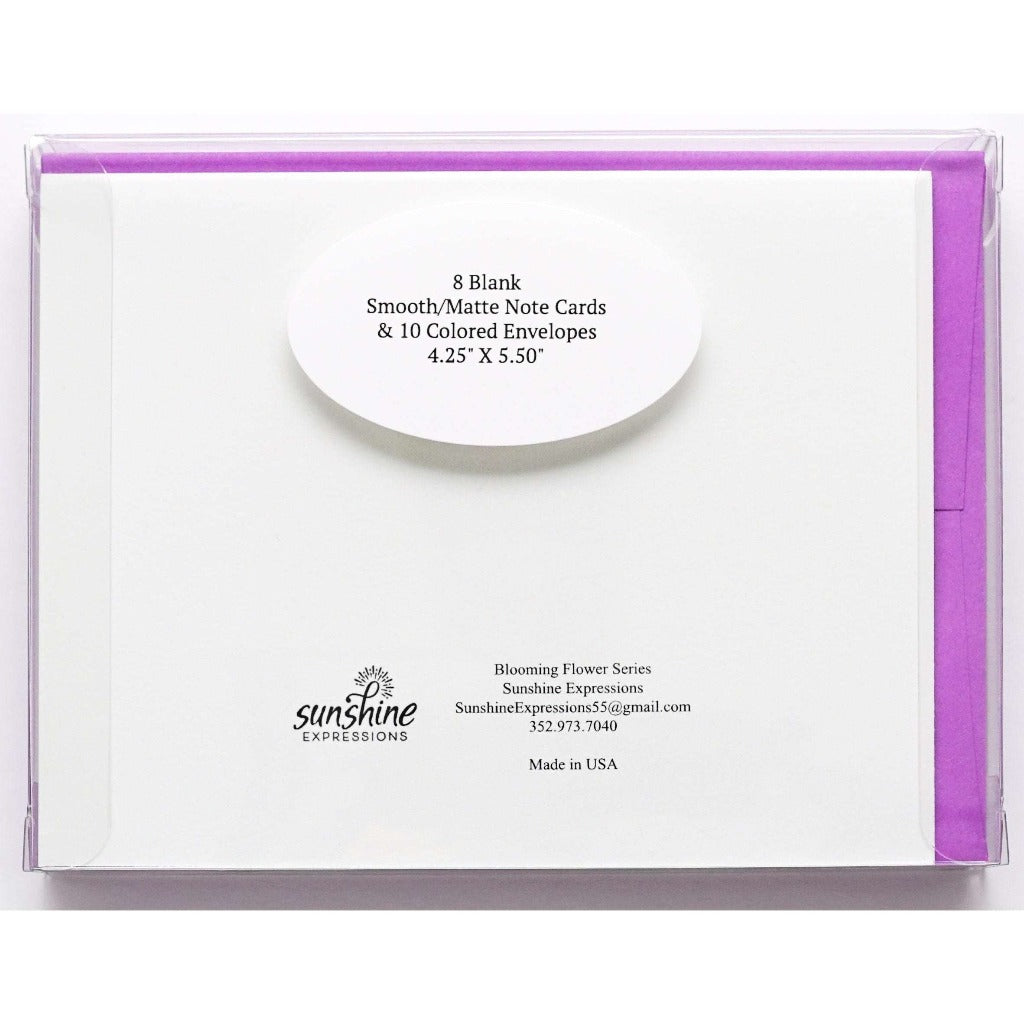 Brighten Their Day with Sunshine Expressions blooming flower note cards. Beautiful and elegant, our blank note cards leave a lasting impression and we make sure the message is delivered right to the heart! Our note cards can be framed as a unique gift.