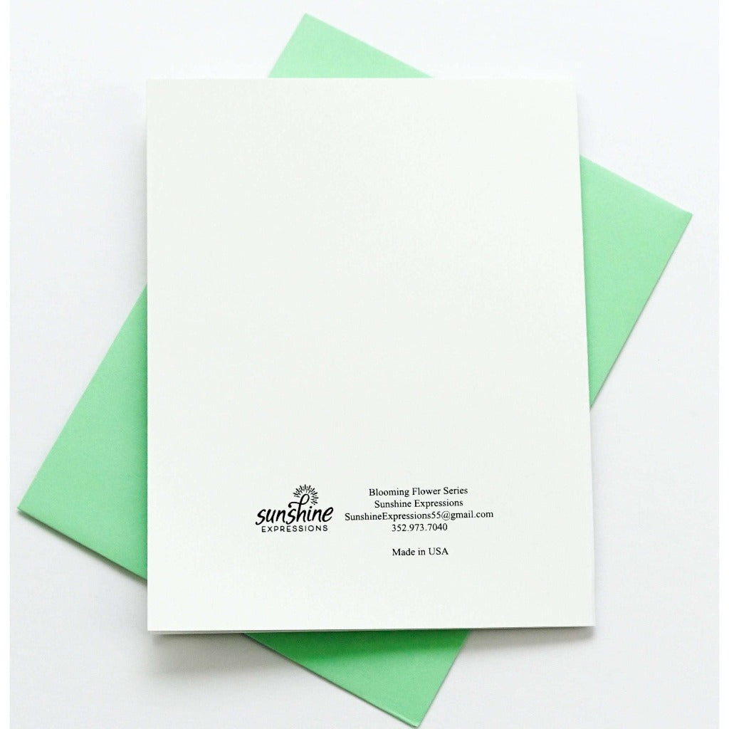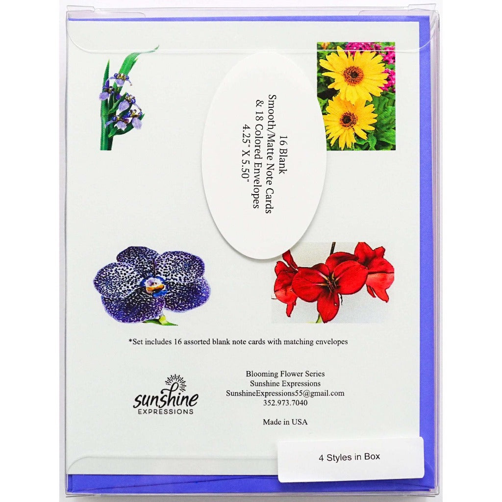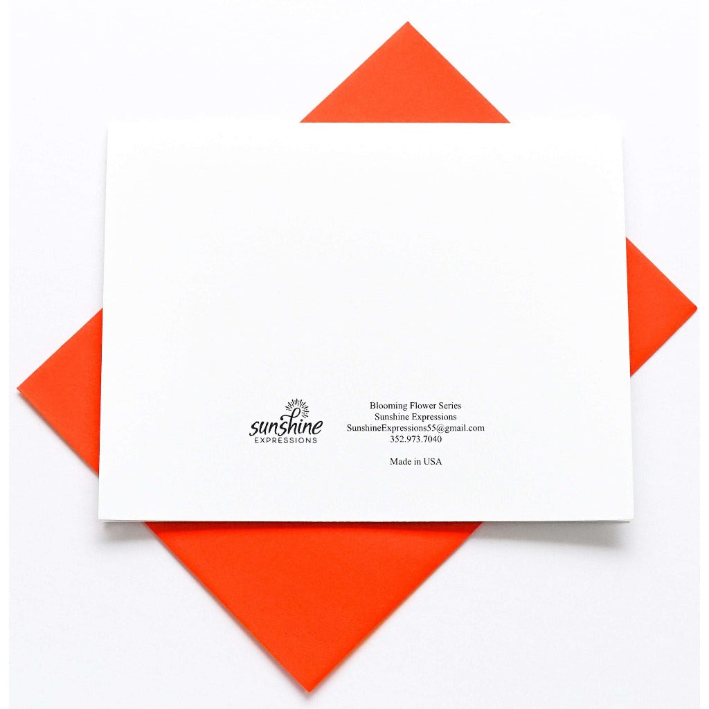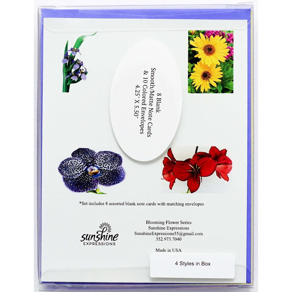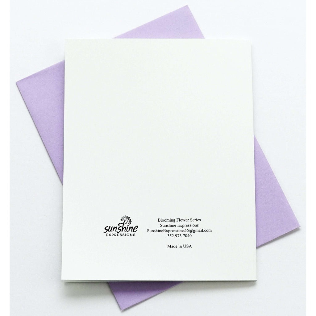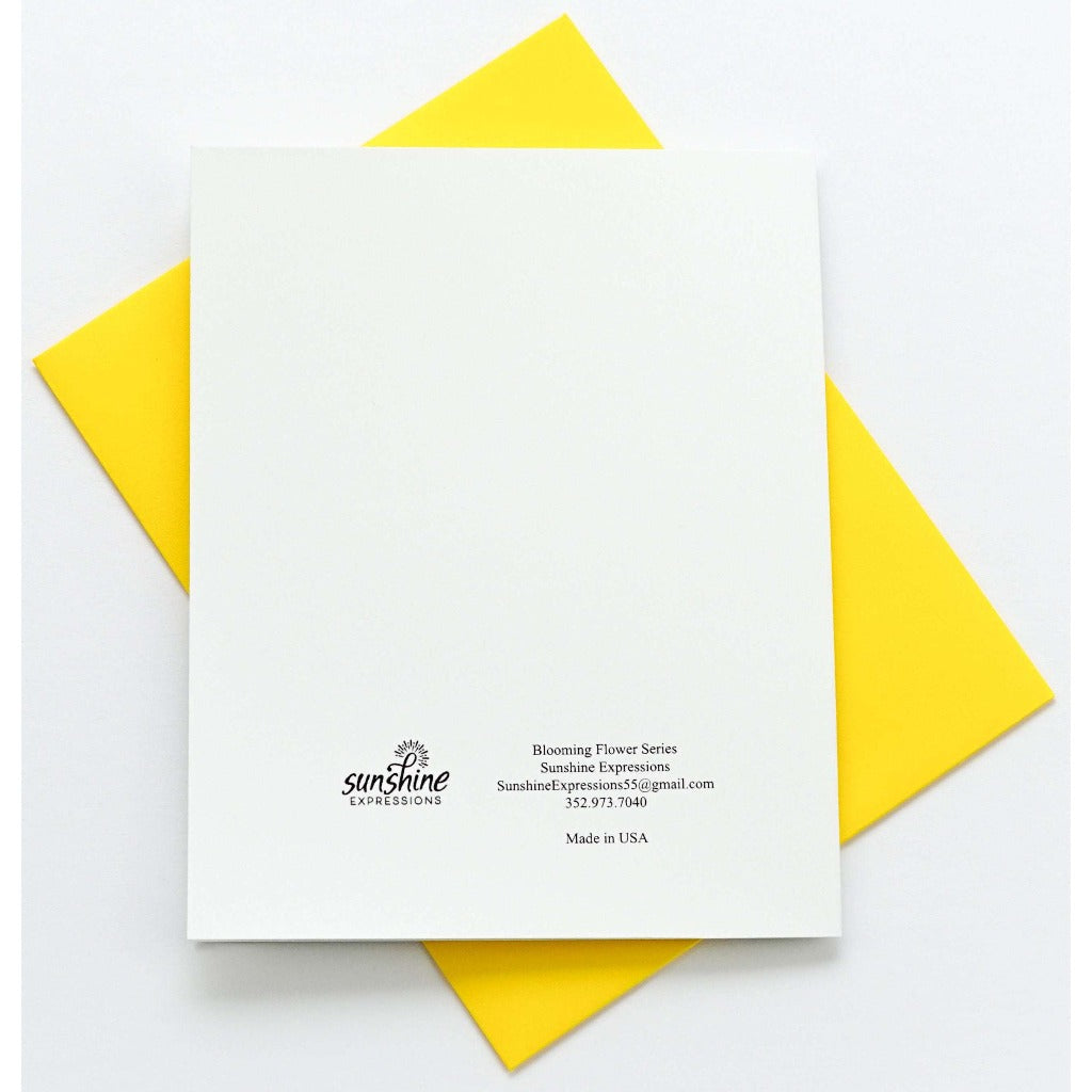 Brighten Their Day with Sunshine Expressions blooming flower note cards. Beautiful and elegant, our blank note cards leave a lasting impression and we make sure the message is delivered right to the heart! Our note cards can be framed as a unique gift.