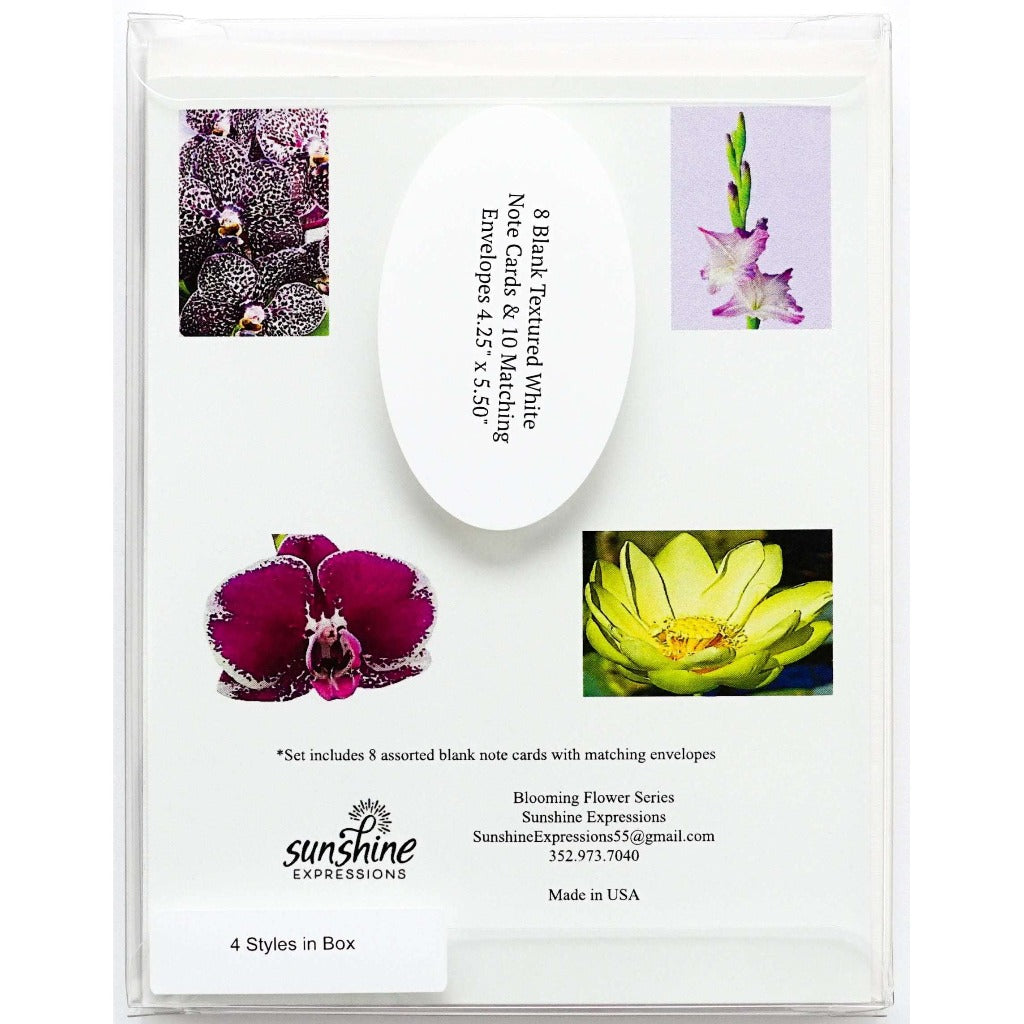 Brighten Their Day with Sunshine Expressions blooming flower note cards. Beautiful and elegant, our blank note cards leave a lasting impression and we make sure the message is delivered right to the heart! Our note cards can be framed as a unique gift.