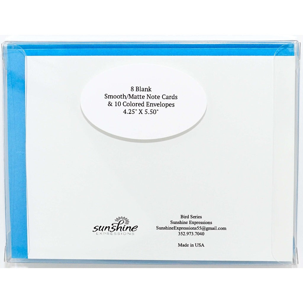 Bird Note Cards: Whimsical birds take flight across these beautiful smooth/matte note cards. Perfect for the wild bird & nature enthusiast. Writing on a bird note card with an encouraging message from you with Sunshine Expressions means the message you write will be even more special and unique. Our note cards for writing notes or gift giving comes in handy for year-round occasions, whether you are sharing encouraging words, expressing gratitude, or saying heartfelt congratulations. No matter what you write, or to whom you send these bird note cards, you are sure to bring a big smile to the receiver’s face!