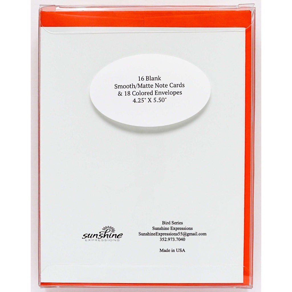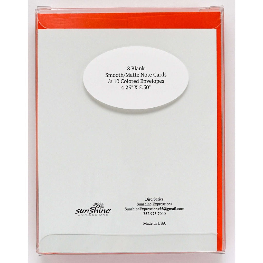 Bird Note Cards: Whimsical birds take flight across these beautiful smooth/matte note cards. Perfect for the wild bird & nature enthusiast. Writing on a bird note card with an encouraging message from you with Sunshine Expressions means the message you write will be even more special and unique. Our note cards for writing notes or gift giving comes in handy for year-round occasions, whether you are sharing encouraging words, expressing gratitude, or saying heartfelt congratulations. No matter what you write, or to whom you send these bird note cards, you are sure to bring a big smile to the receiver’s face!