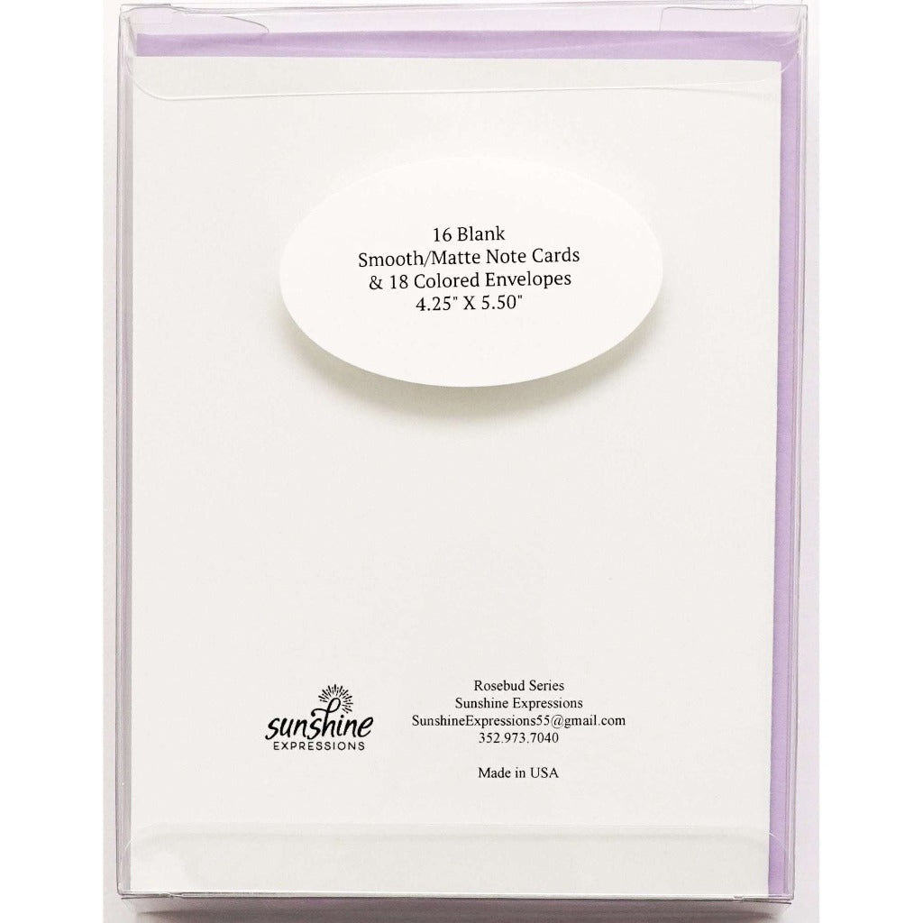 Learn The Art of Staying in Touch with Sunshine Expressions note cards. Happiness is...receiving a note card in this digital age. The thank you, I am sorry, I love you, get well soon, missing you and thinking of you messages will be extraordinary when you send them with our blank elegant rosebud note cards.