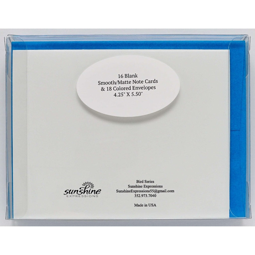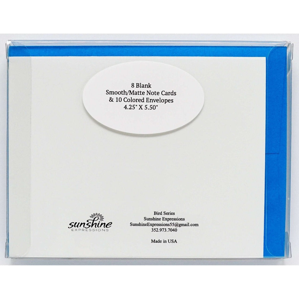 Bird Note Cards: Whimsical birds take flight across these beautiful smooth/matte note cards. Perfect for the wild bird & nature enthusiast. Writing on a bird note card with an encouraging message from you with Sunshine Expressions means the message you write will be even more special and unique. Our note cards for writing notes or gift giving comes in handy for year-round occasions, whether you are sharing encouraging words, expressing gratitude, or saying heartfelt congratulations. No matter what you write, or to whom you send these bird note cards, you are sure to bring a big smile to the receiver’s face!