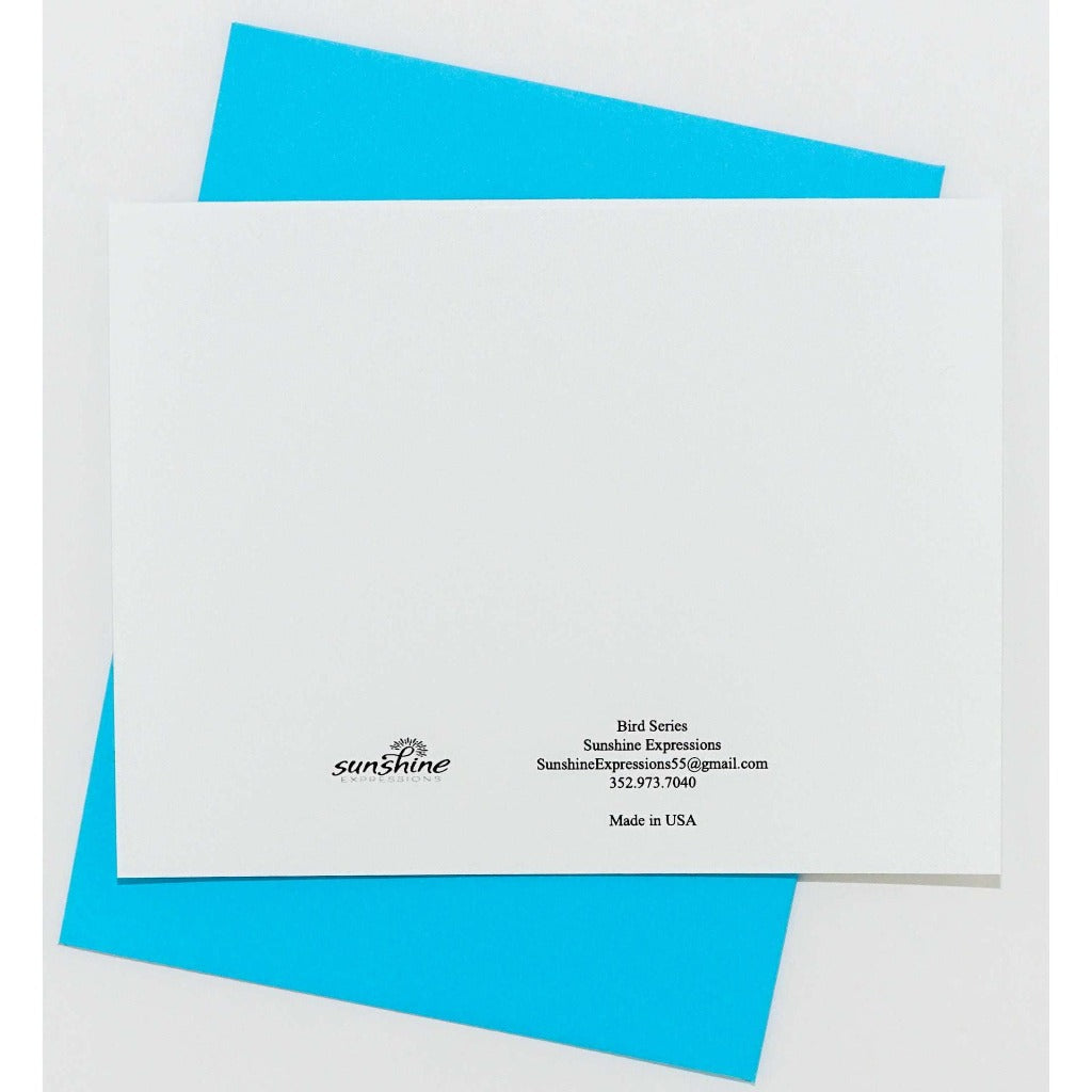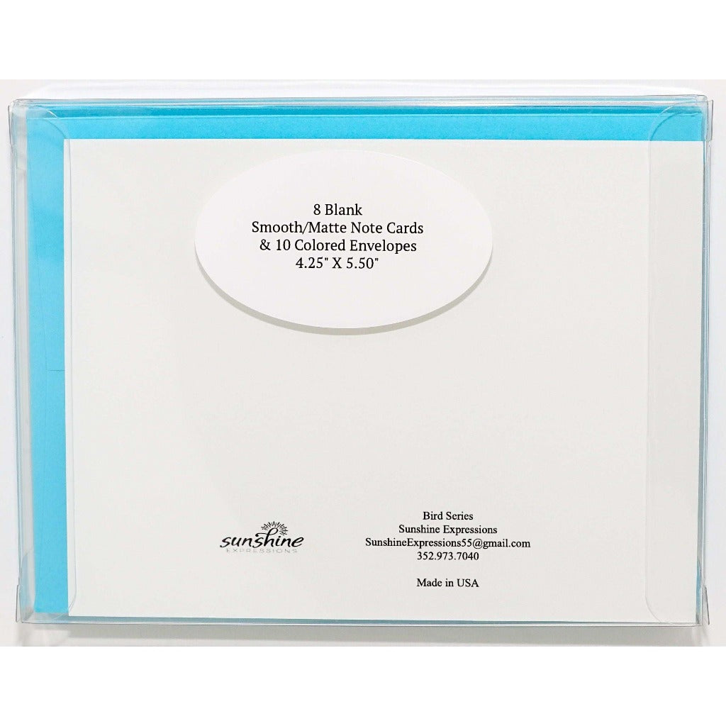 Bird Note Cards: Whimsical birds take flight across these beautiful smooth/matte note cards. Perfect for the wild bird & nature enthusiast. Writing on a bird note card with an encouraging message from you with Sunshine Expressions means the message you write will be even more special and unique. Our note cards for writing notes or gift giving comes in handy for year-round occasions, whether you are sharing encouraging words, expressing gratitude, or saying heartfelt congratulations. No matter what you write, or to whom you send these bird note cards, you are sure to bring a big smile to the receiver’s face!