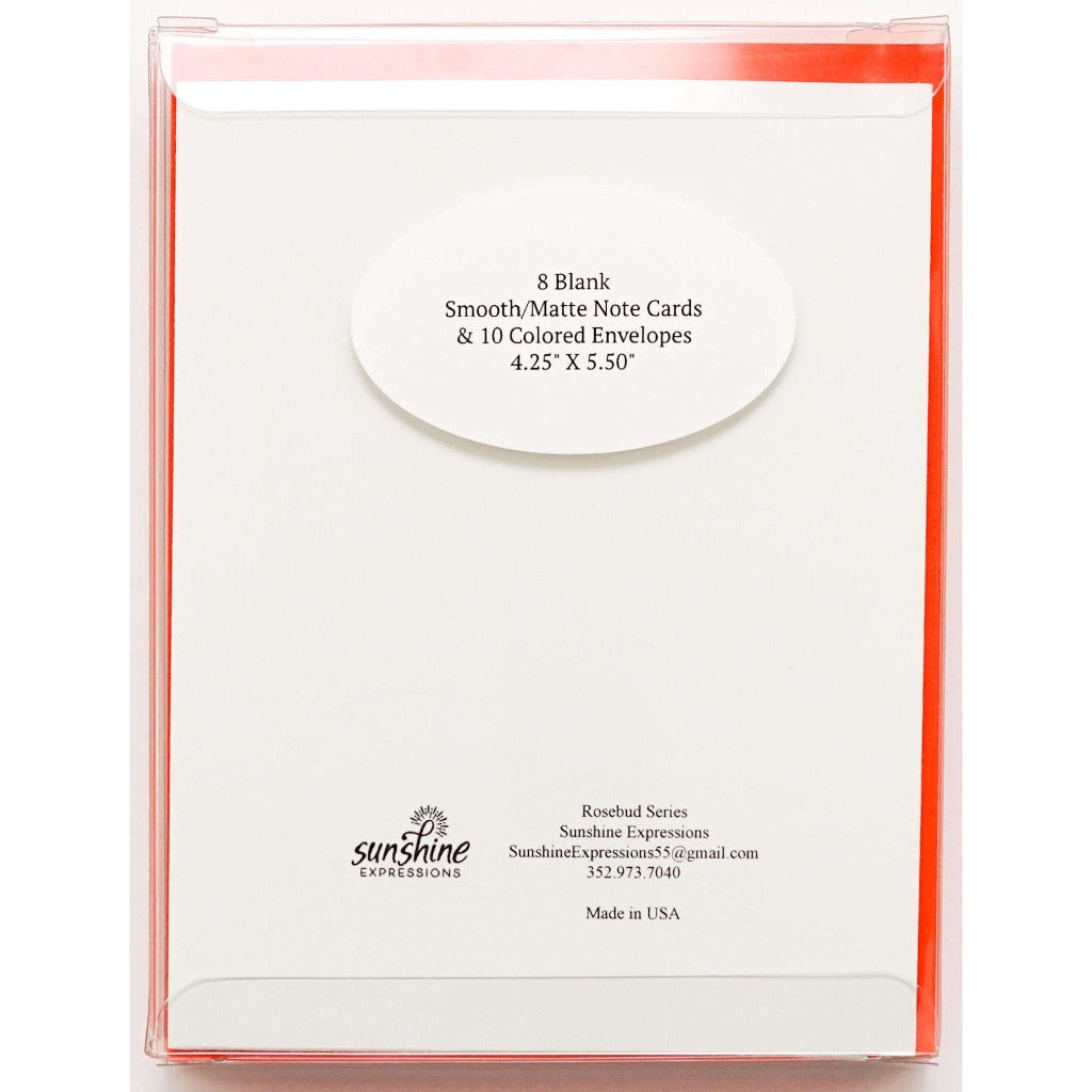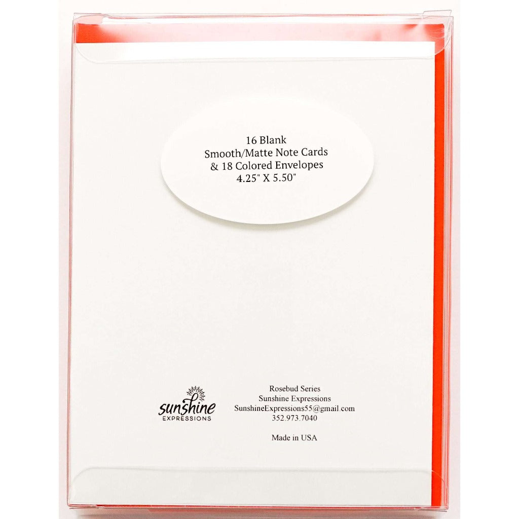 Matching envelopes included: With the graphic note cards, you will get matching-colored envelopes, so you do not have to run to the stationery store and hunt for an extra envelope at the last moment. Oh, yes…there are two extra envelopes because let us agree…no one's perfect. Yes, you heard us! You get two additional colored premium envelopes to coordinate with your rosebud note cards.