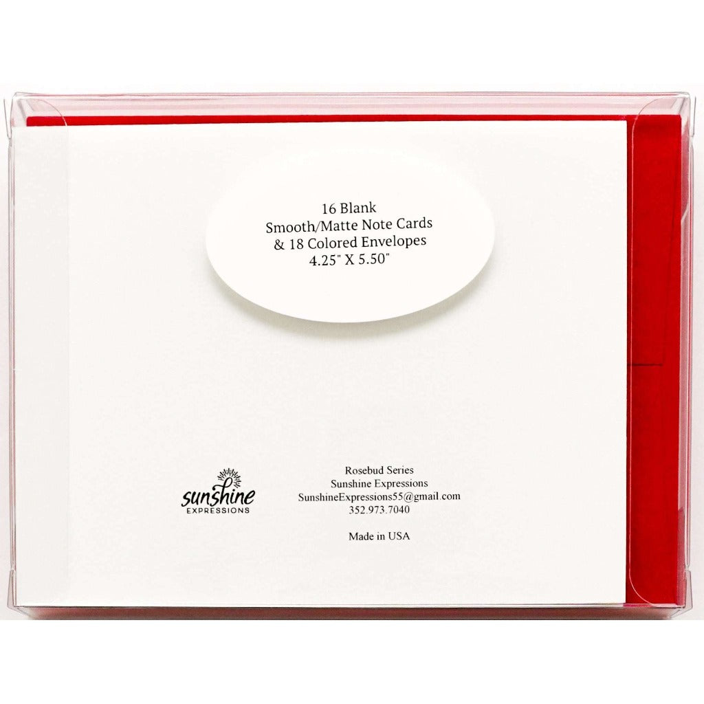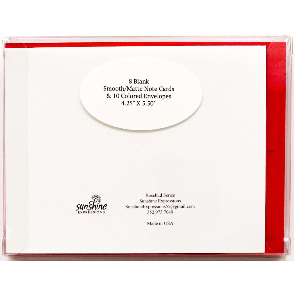 Rossie Red Rosebud Smooth Note Cards w/ Colored Envelopes