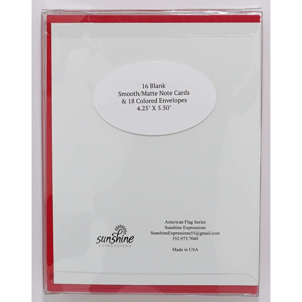 Make it Personal: The American flag is a symbol of freedom and liberty. Writing on an American flag note card with an encouraging message from you with Sunshine Expressions means the message you write will be even more special and unique. Writing your own messages of love, praise, encouragement, or support the receiver will surely feel your thoughtfulness.