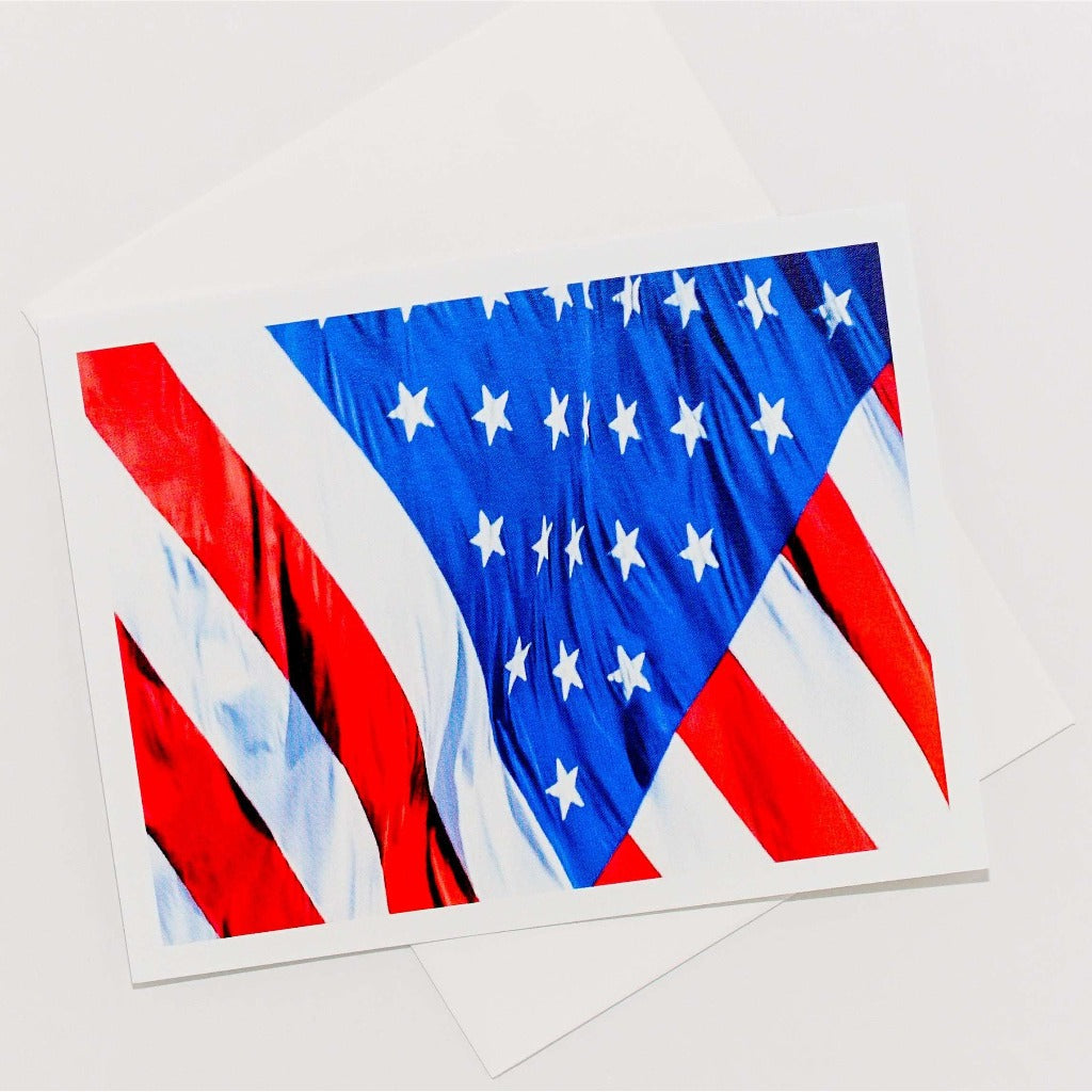 Let These Spirit of America Note Cards Convey Your Thoughts: Our American flag note card series shows pride in our flag. The unique shots are all original photographs taken at different angles to show the true personality of our red, white, and blue. When you use our note cards featuring American flags your message will show you love your country and are proud to be an American. Show your American spirit with Old Glory note cards.