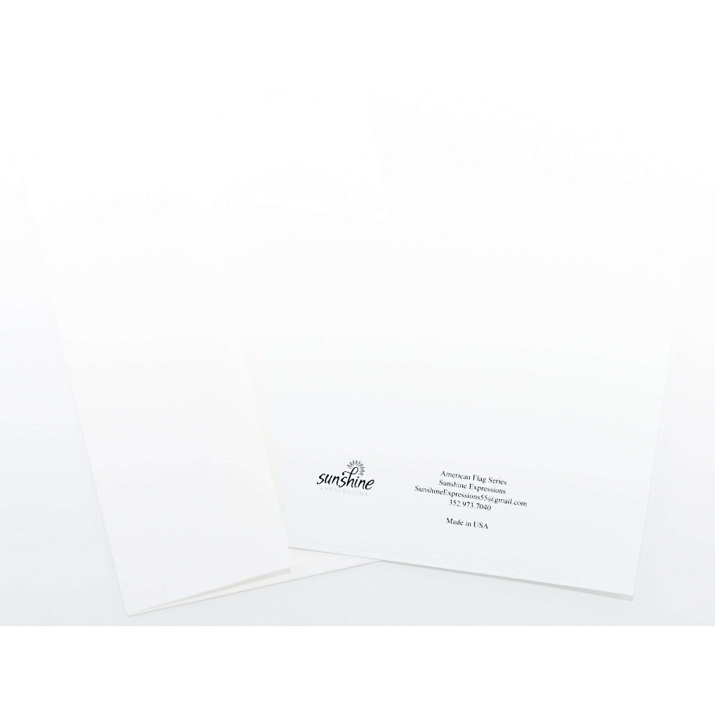 Make it Personal: The American flag is a symbol of freedom and liberty. Writing on an American flag note card with an encouraging message from you with Sunshine Expressions means the message you write will be even more special and unique. Writing your own messages of love, praise, encouragement, or support the receiver will surely feel your thoughtfulness.