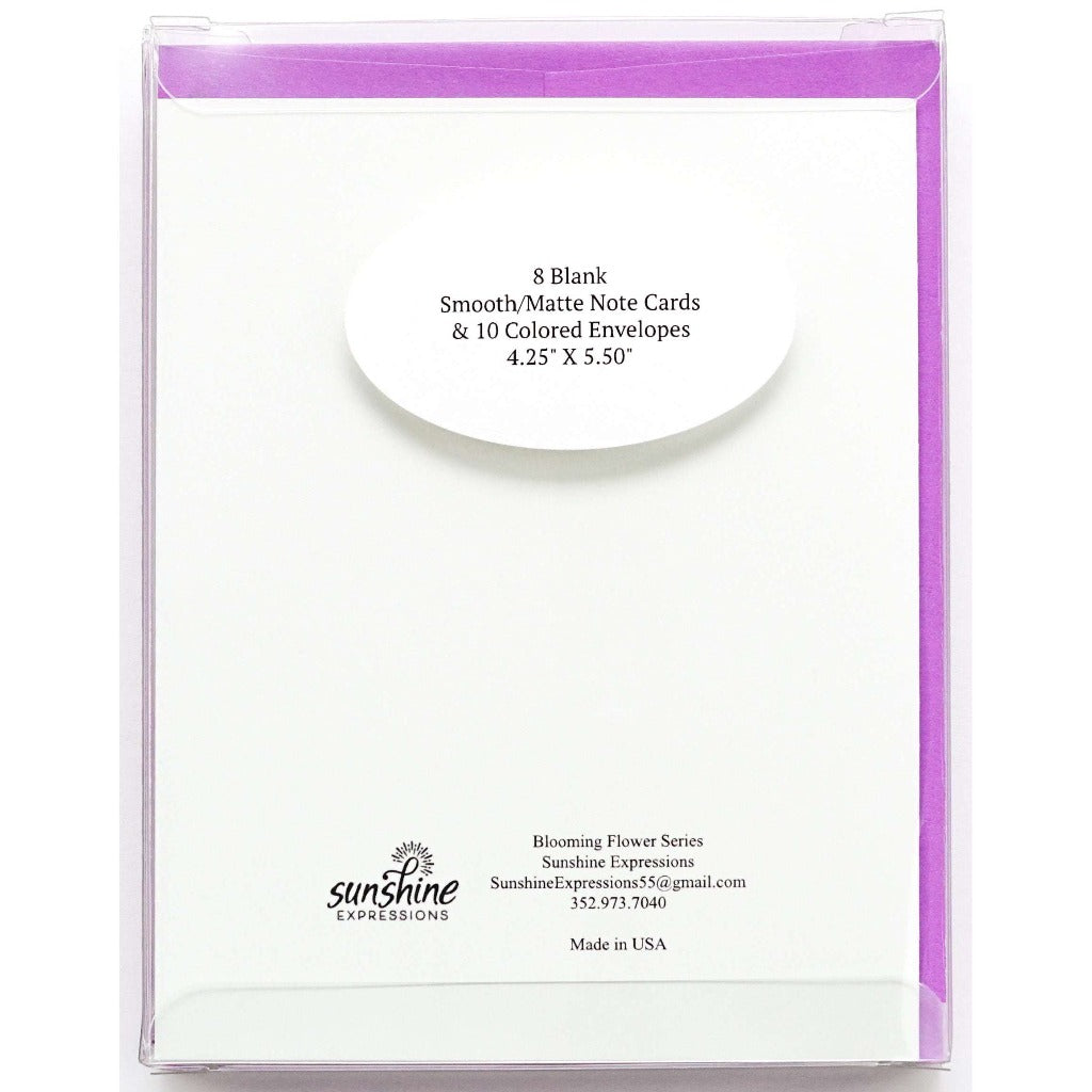 Brighten Their Day with Sunshine Expressions blooming flower note cards. Beautiful and elegant, our blank note cards leave a lasting impression and we make sure the message is delivered right to the heart! Our note cards can be framed as a unique gift.